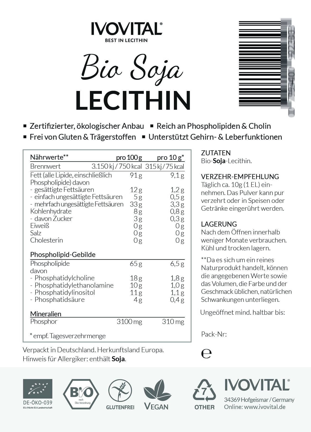 Nährstoff-Vorteile vom IVOVITAL® Bio Sojalecithin (Lezitin)